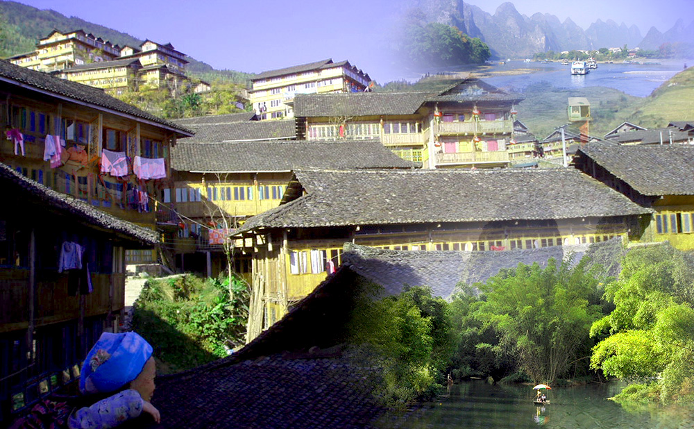riverside up to the mountaintop, like backbone of a giant dragon. So called Longji(Dragon Backbone) Rice Terraces. - Visit Zhuang Ethnic Village around the Rice Terraces. The village has still retains the features of costumes and life style of the ethnic Zhuang. The