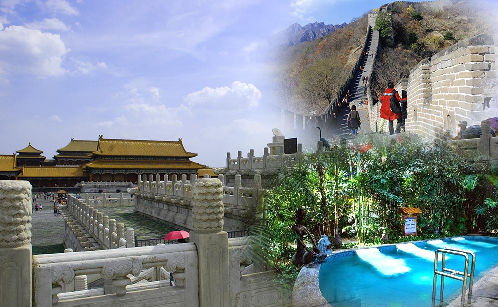 Drive about 1.5 hours to Mutianyu Great Wall. With a history of 1400 years, Mutianyu is one of the most famous and best preserved sections of China Great Wall. 23 original watchtowers and other ancient constructions are distributed along the wall. - Tansfer to Hot Spring Resort in the afternoon. There are many kinds of pools in the resort. The hot spring water is clean and flowing. The other services are also considerately.